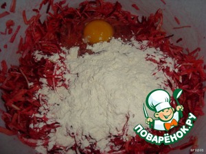 Добавляем яйцо и муку, соль, перец все хорошо перемешиваем