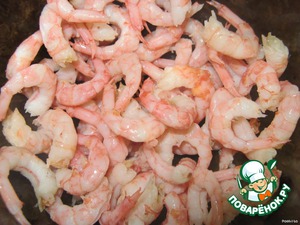 Выкладываем салат на блюдо или в салатник.Сверху распределяем креветки.