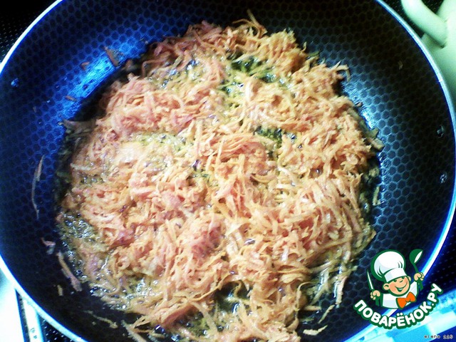 На растительном масле обжариваем минут пять морковочку.