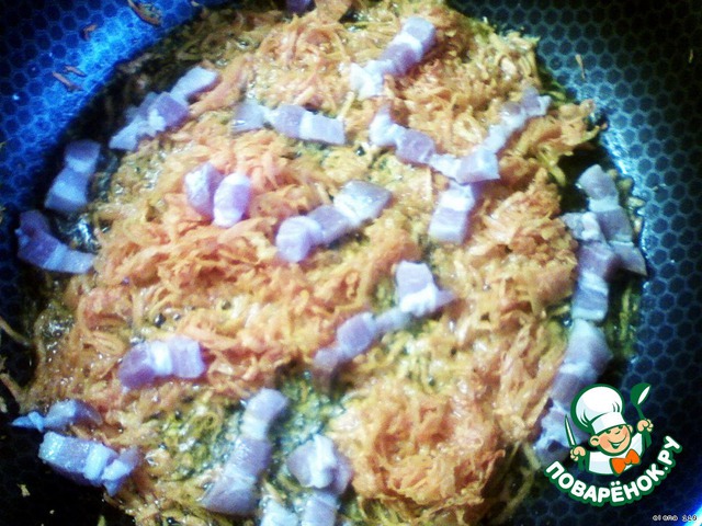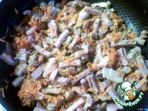 - Ассорти мясное (я делала с обжаренным фаршем, окороком и грудинкой)