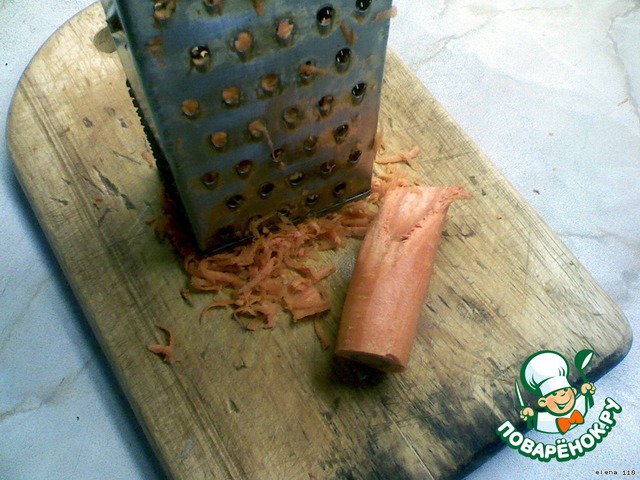 Натираем морковочку на крупной тёрке. -