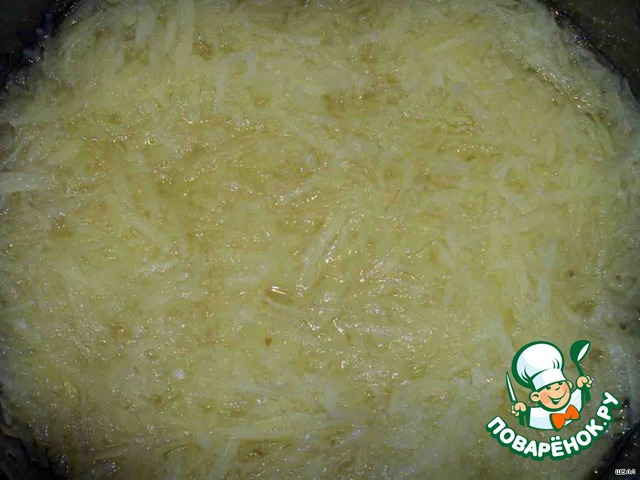 Лук нарезаем и обжариваем на растительном масле под крышкой на самом маленьком огне 20~30 минут до мягкости.