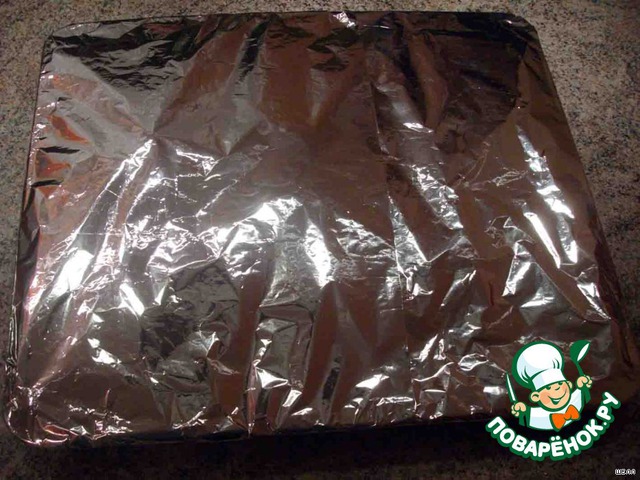 Накрываем нашу красоту фольгой и отправляем в духовку на 1,5-2 часа при температуре 200 градусов.