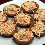 Расставляем готовые тарталетки на красивое блюдо, украшаем зеленью, и... можно начинать войну с нечистью!)))