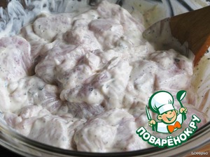 • Приготовить маринад: майонез, горчицу, лимонный сок и специи перемешать до однородности.