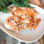 Нежные кусочки филе накрытые морковной шубкой так и тают во рту.