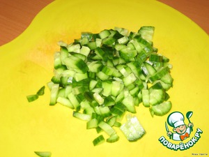 Огурец кубиками режем.