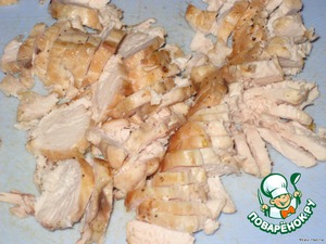 Остывшую грудку нарезать, не мелко.
