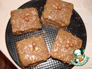 • Готовый корж ровно обрезать, разделить на ровные квадратики.