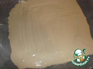 Вначале я очень рассердилась на автора - тесто странное, липкое, внизу стало подгорать, а наверху ещё липло. Затем я взбесилась просто - я пекла на бумаге, всё это дело намертво прилипло. пришлось ножом и водой отскрябывать с полчаса. Крем вышел очень даже неплохой, только я клала арахис жареный и ещё какао. Но, знаете, когда я всё это соединила и стала есть ... злость как-то улетучилась сама собой)))) Очень вкусно)))) просто не пеките на бумаге)))) Это я виновата, криворукая)