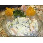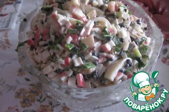 Крабовое мясо порвать руками (у меня были крабовые палочки и я их крупно нарезала).
