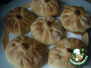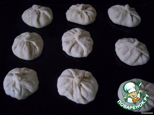 Края защипнуть к верху, выложить на смазанный противень, выпечь.