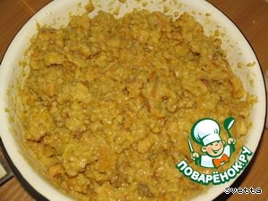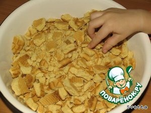 Печенье разломать на кусочки (нам больше нравится, когда они не мелкие, а средние, т. к. мелкие превращаются в кашу в процессе приготовления).