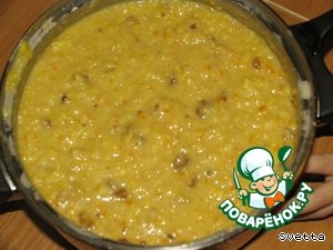 Апельсины натереть на крупной терке (я измельчила на мясорубке). Прибавить к смеси. Размешать.