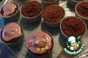 Готовые кексики вынимаем из духовки, немного остужаем и поливаем заливкой.