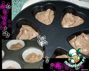 разлить в формы. У меня получилось 6 сердечек и 12 маффинов. Выпекаем 20-25 минут в предварительно нагретой до 180*духовке.