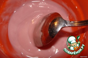 Пока кексы пекутся делаем заливку. Для этого смешиваем сахарную пудру с красным вином. Вино добавляем постепенно, пока не получится тягучая однородная масса розового цвета. На 250 гр пудры уходит примерно 5-6 ст.л. вина.