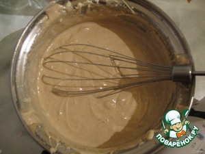 В растертые с сахаром желтки постепенно вводим наш кофе с крахмалом и предварительно размягченное масло. масло должно быть именно мягким, а не растопленным. взбиваем крем. крем получается не очень густой.