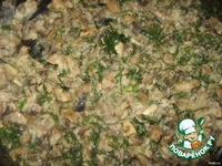 Начинка: Грибы нарезать, укроп мелко порубить. Поджарить грибы на сливочном масле. Добавить к ним укроп, сметану, муку, хорошо перемешать и потушить под крышкой пару минут. |