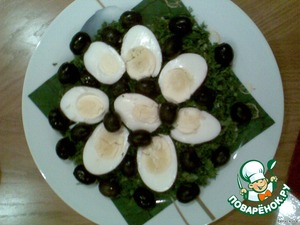 Маслины разложить поверх яиц и зелени.
