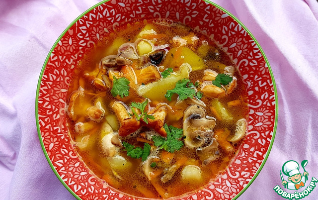 Ингредиенты для «Суп с лисичками и шампиньонами»: