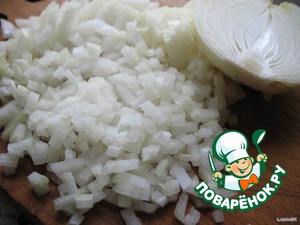 Лук мелко нарезаем (именно нарезаем, а не пропускаем через мясорубку, а то лук даст ещё жидкости)