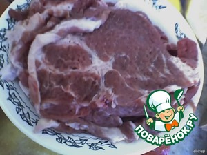 Свинину нарезать на крупные куски, отбить.