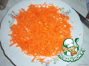 Сверху натереть сырую морковку. Слои не делайте сильно "толстыми"