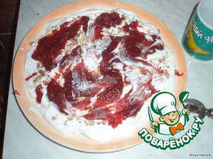Сверху выложить клюкву с сахаром и немного ее размазать.