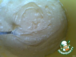 Начинка: отделить белки от желтков. Желтки растереть с творогом, 2/3 стак.сахара, лимонным соком и 1 ст. л. крахмала. Белки взбить с оставшимся сахаром, ввести в творожную массу