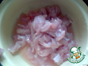 Куриную грудку нарезать, посыпать приправой и обжарить.