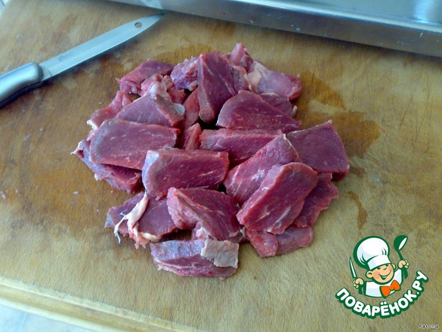Мясо заливаем водой, солим и оставляем готовиться на среднем огне до полной мягкости,