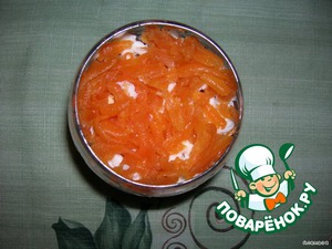 Последний слой: желток перемешиваем с оставшимся соусом и покрываем салат.