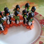 К пингвинам мы не ровно дышим))))Есть даже целая коллекция... А вот таких пингвинчиков я случайно нашла на другом сайте... когда искала картинки пингвинов .. что бы нарисовать на камушках... ну и конечно теперь они украшают массу блюд на нашем столе...