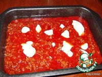 Выложить 3 пластины лазаньи, залить 1/4 соуса. Сверху полить 1,5 ст.л. сметаны или майонеза и т.д. Повторить 3 раза. |