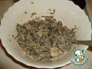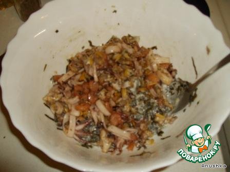 Смешиваем капусту с охлажденным обжаренным коктейлем.