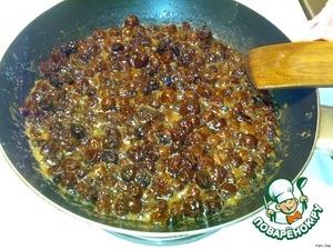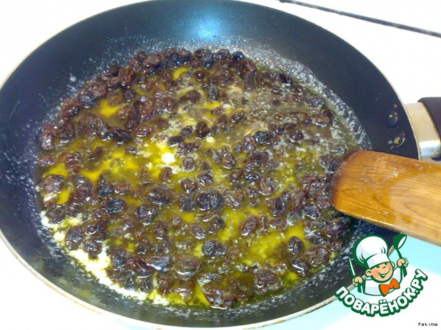 При переменном помешивании довести до такого вздутия. Изюминки преврашаются в такие веселые шарики ) Как только все станут шариками, сковородку снять с огня.