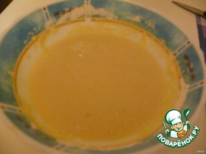 Для этого яйца взбиваем с солью и сахаром, добавляем вино и муку. -