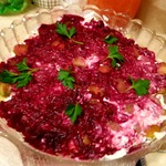 Вот приготовила такую шубу на День всех влюбленных. Очень вкусно и красиво. Шубу я делаю с соленым огурчиком, так как не понимаю сочетание моркови и селедки. Попробуйте, очень вкусно и закусочка хорошая!!!