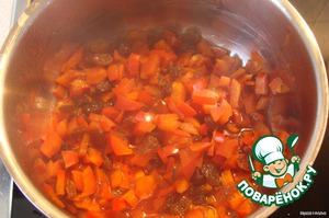 добавляем изюм с вином и тушим до испарения жидкости (минут 5-7)