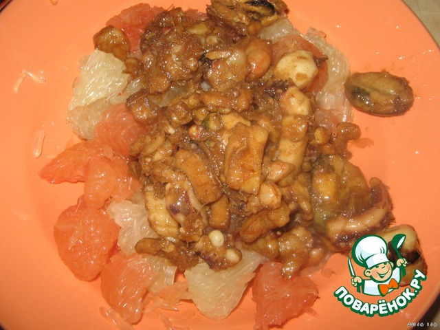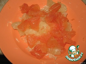 Грейпфрут и свити, очистить от кожицы и плёночек. Поломать на кусочки.