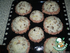 Сыр натереть на мелкой тёрке и обсыпать наши "холмики".