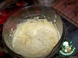 Желтки отделить от белков, растереть их с сахаром и размягченным маслом. Тщательно растереть добела (ради чистоты эксперимента, я делала это вручную, ведь 50 лет назад не было кухонных комбайнов).