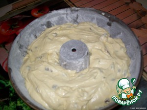 Форму смазать маслом и слегка посыпать мукой. Тесто выложить в форму, заполняя ее наполовину.