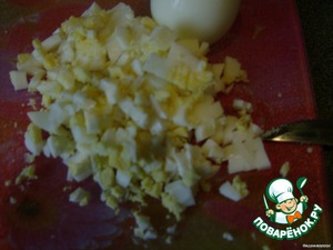 • Пока варятся яйца, нарезать мелко кубиками помидоры