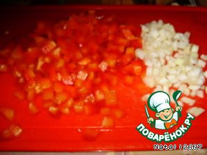 Болгарский перец очистить от семян и прожилок, нарезать кубиком. Сельдерей нарезать кубиком или кружком.