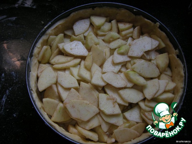 Вынуть и выложить на тесто яблоки. -