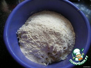 Сверху муку.