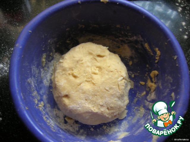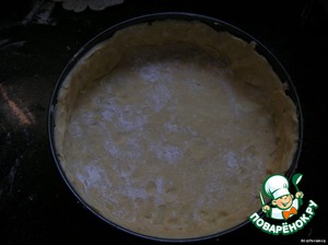 От теста отрезать небольшой кусок, остальное тесто раскатать и выложить в форму (форму выстелить бумагой для выпечки
