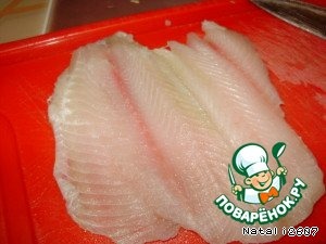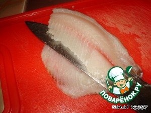 Филе рыбы разрезать вдоль пополам (очень острым ножом).